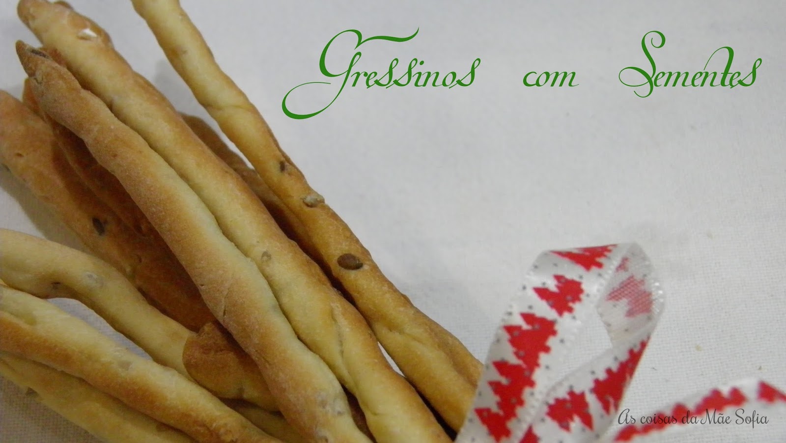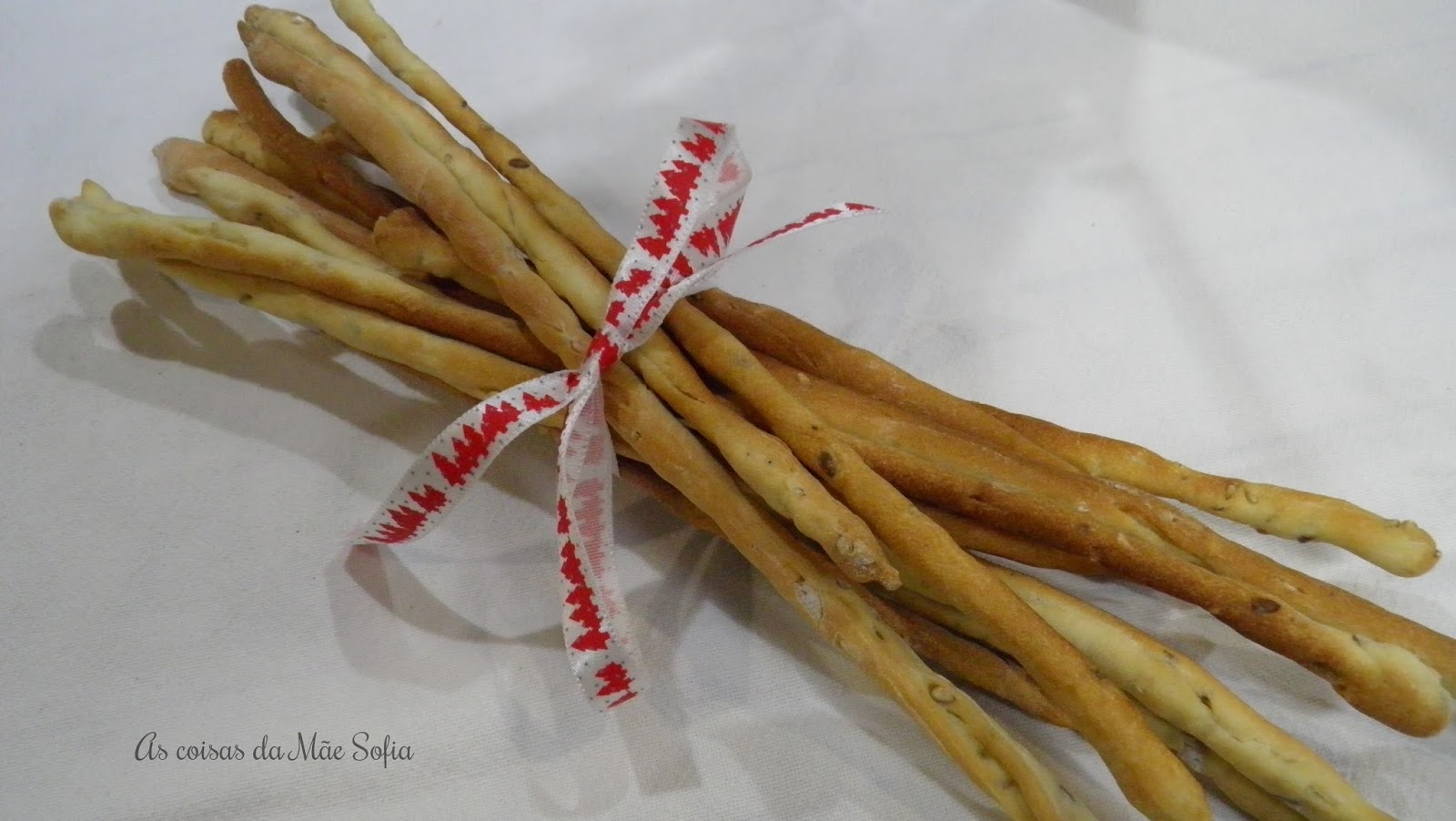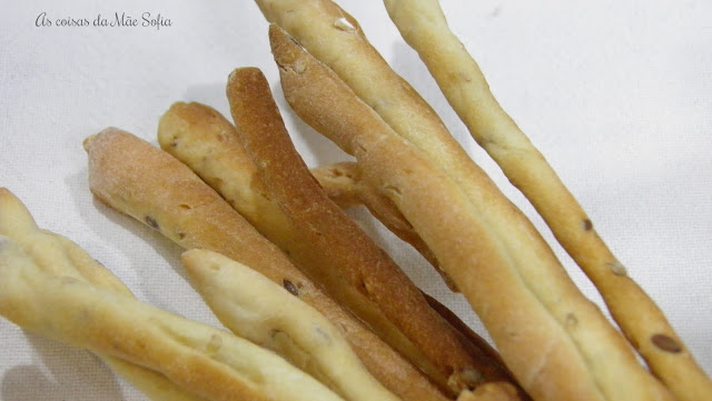 Tinha vista esta receita num programa chamado "Mary Berry cooks" no canal 24Kitchen, e estava só à espera de uma oportunidade para a fazer. Podem ficar mais ou menos estaladiços, consoante o vosso gosto. Esta receita pode ser feita com uns dias de antecedência, guardam-se os gressinos num saco, fecham-se e estão prontos a servir no dia que são precisos, como por exemplo no dia de Natal ou Ano Novo.