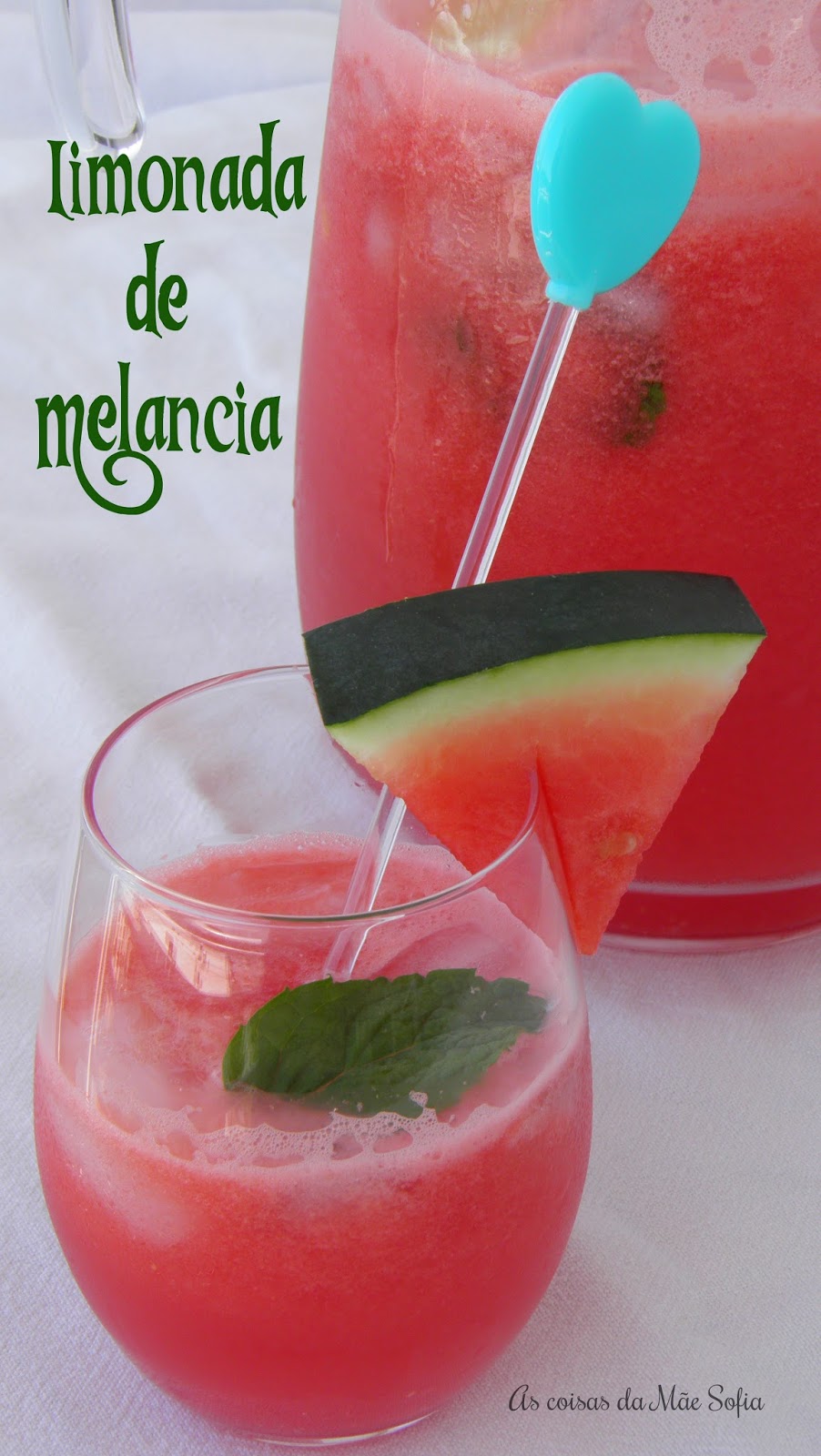 Mas voltando ao refresco! Estou a delirar com tanta melancia! Bem, se se faz limonado de morango, porque não fazer limonada de melancia? Gostámos tanto que apetece comprar mais melancia para fazer refresco.