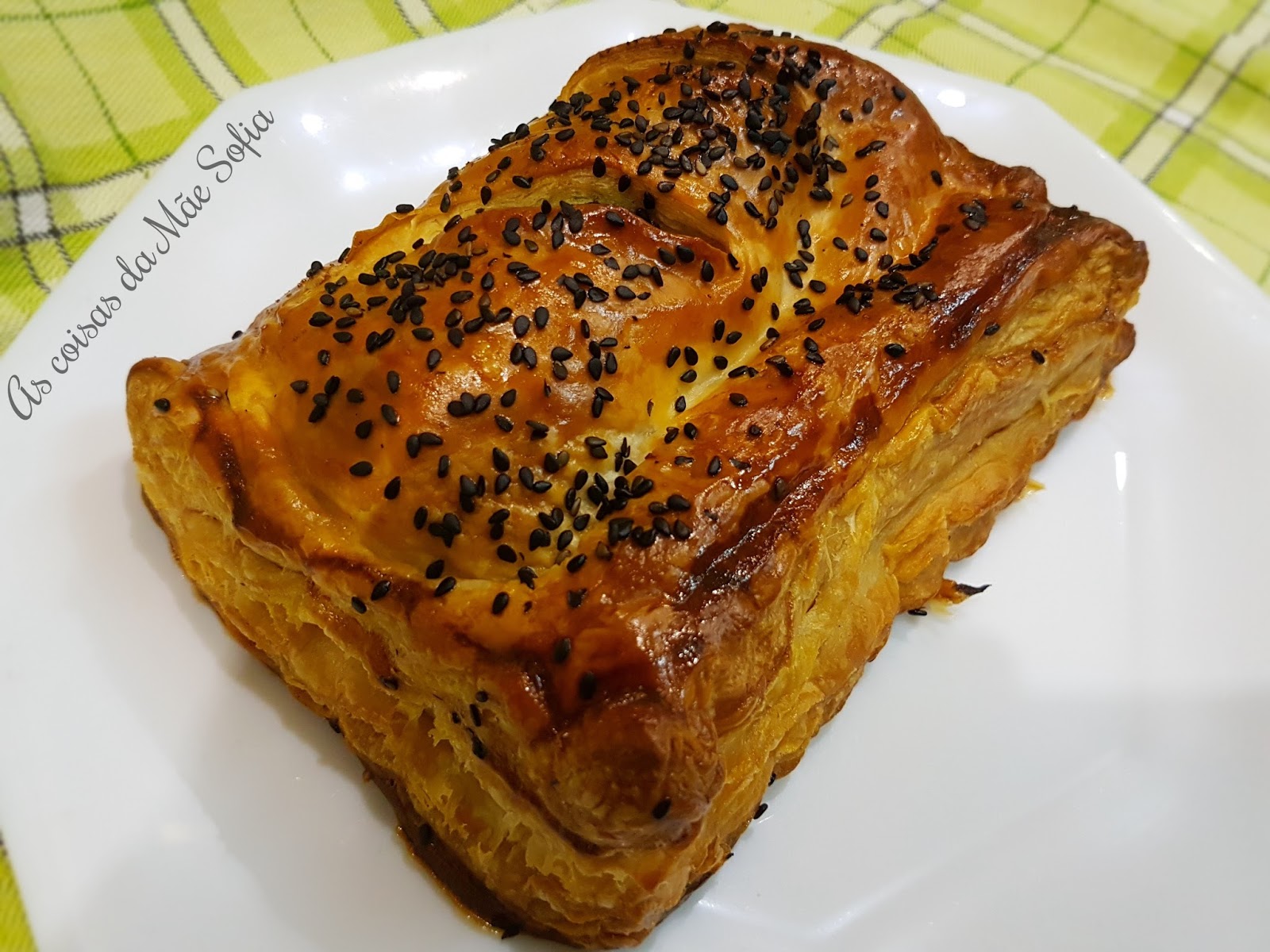 Leva-se ao forno até a massa folhada estar bem douradinha. Servir com uma salada verde.